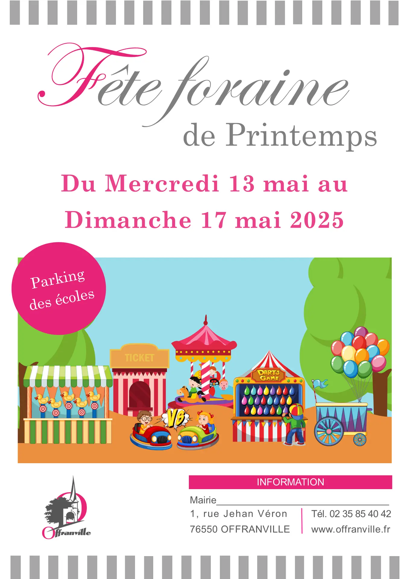Evènement traditionnel de la semaine de l'Ascension à Offranville, la fête foraine de printemps revient pour le plus grand plaisir des enfants, des chanceux, des adroits et des gourmands!