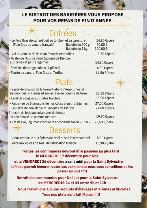 - Le Bistrot des Barrières : Repas de fin d’année