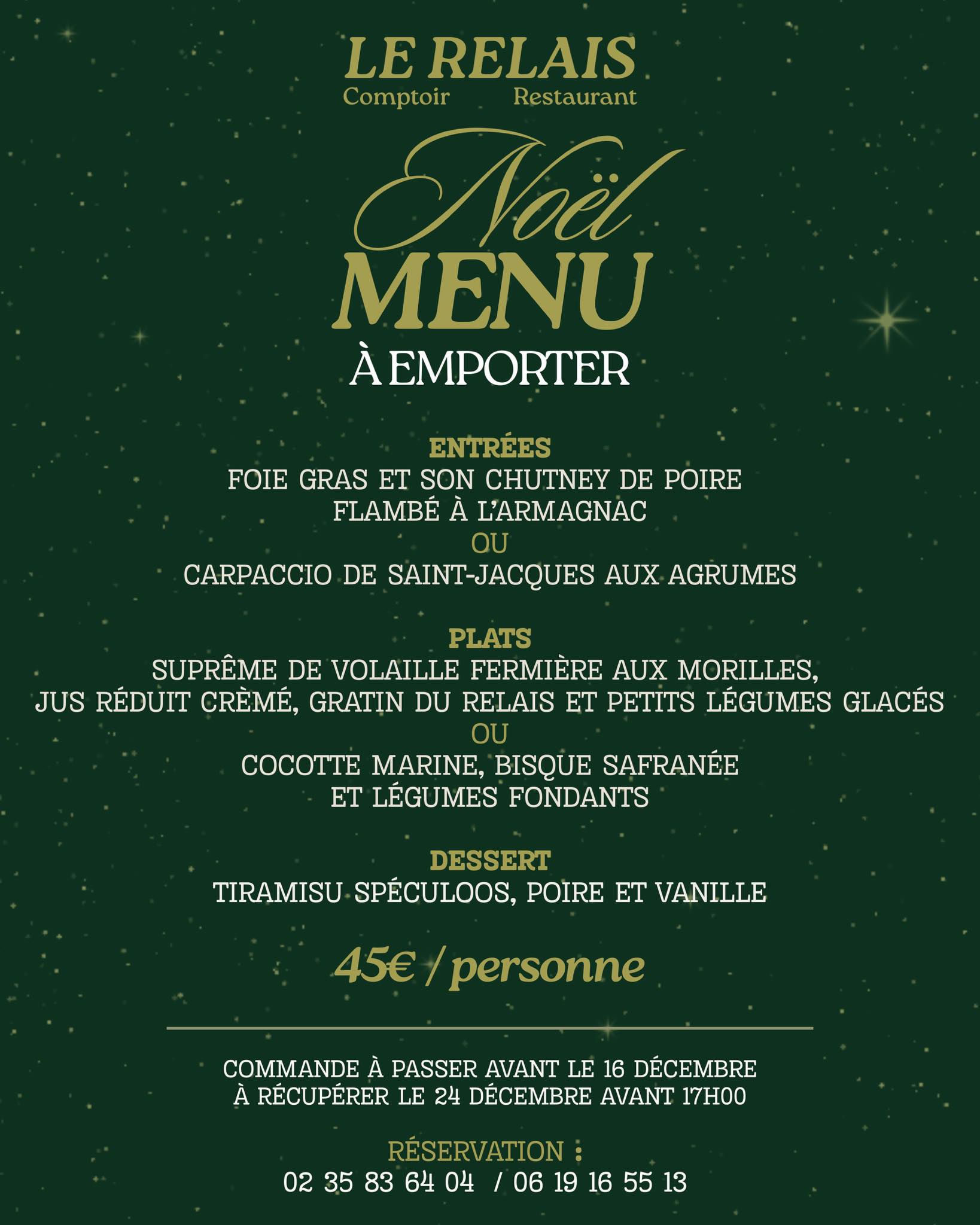 - Le Relais (Varengeville-sur-Mer) : Menu de Noël à 45 €