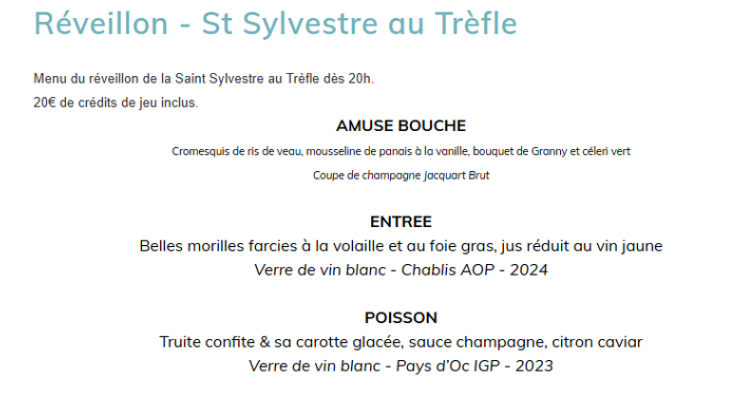 - Le Trèfle : Menu à 145 € et Dîner Spectacle à 185 €