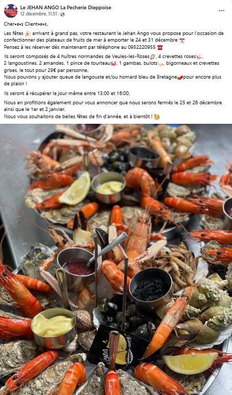 - Le Bistrot Gourmand (Rouxmesnil-Bouteilles) : Repas de fin d’année