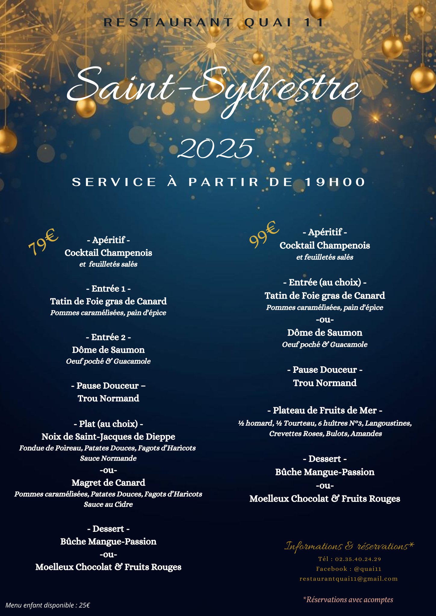 - Le Quai 11 : Menu à 79 € et 99 €